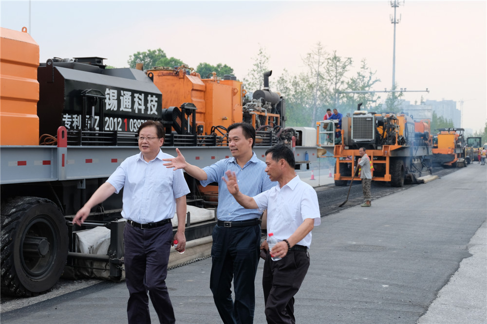 近日,錫通科技董事長陸元明陪同朱市長及相關領導,參觀了錫興路從高浪路到泰山路段的道路維護工作,并親自講解了各個再生機組的職能和施工工藝流程。